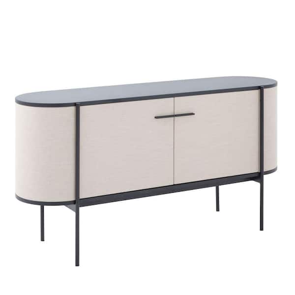 Beige and Black Wood Top 59 in. Sideboard with 2 Doors