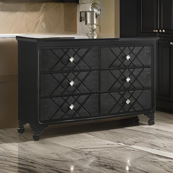 Black 6-Drawers 63 in. Dresser Without Mirror