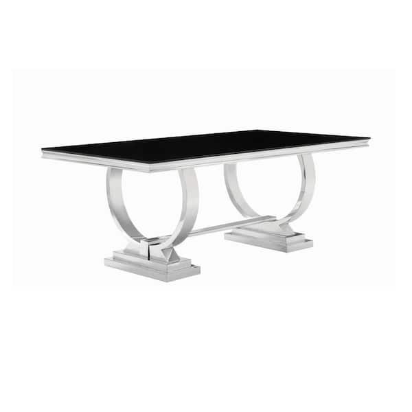 Black Glass 42 in. Trestle Dining Table Seats 2
