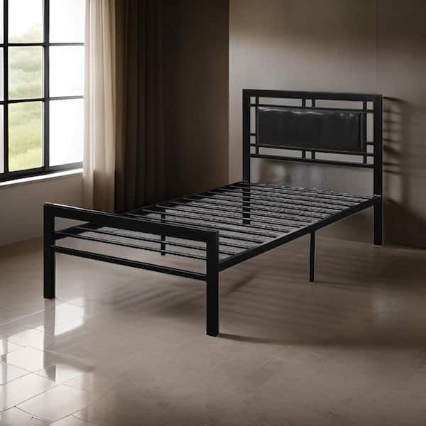 Black Metal Frame Twin Platform Bed With Leather Upholstered Headboard