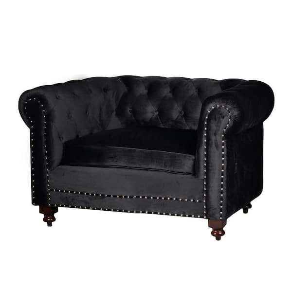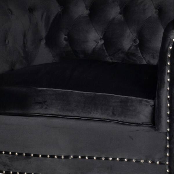 Black Polyester Accent Chair with Tufted Chesterfield Style