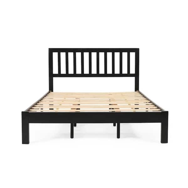 Black Wood Frame Queen Size Platform Bed with Headboard