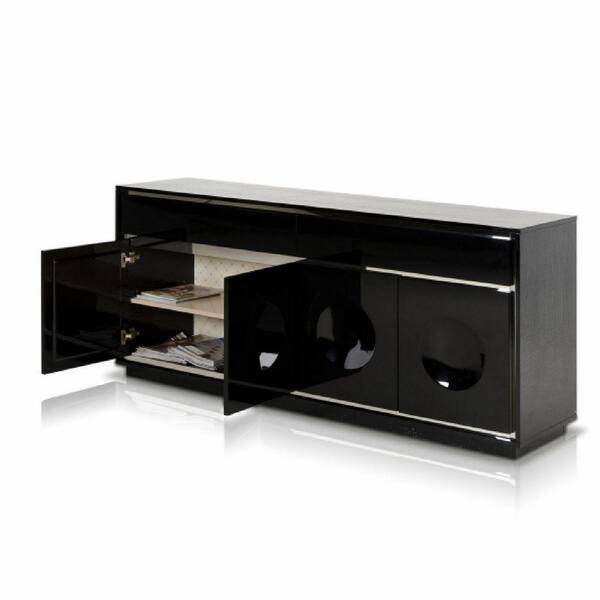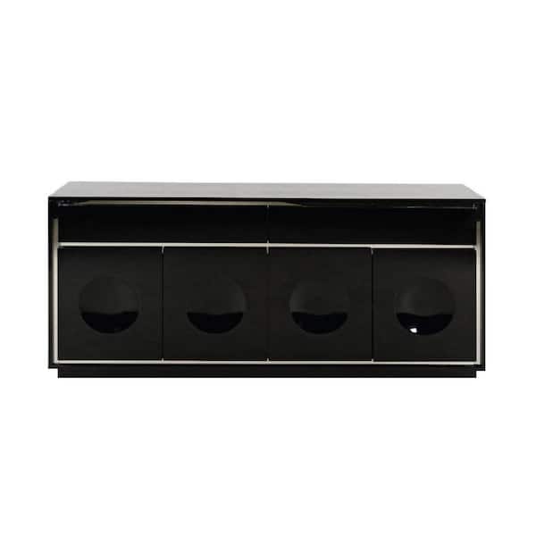 Black Wood Top 18 in. Sideboard with-Drawers and 4-Doors
