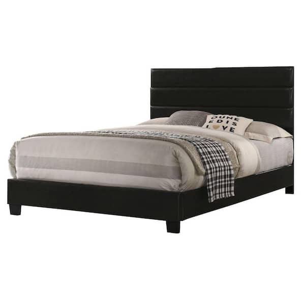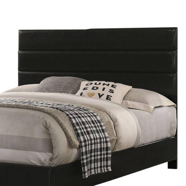 Black Wooden Frame FullPlatform Bed with Panel Headboard