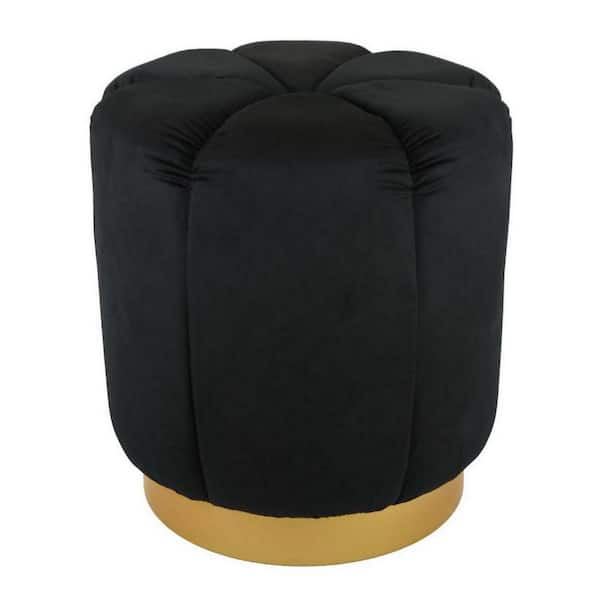 Black and Gold Velvet Round Accent Ottoman
