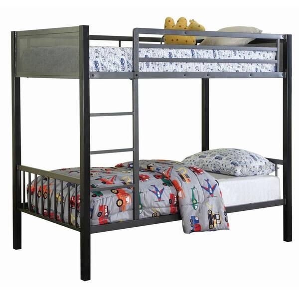 Black and Gray Twin Adjustable Bunk Bed with Built In Ladder
