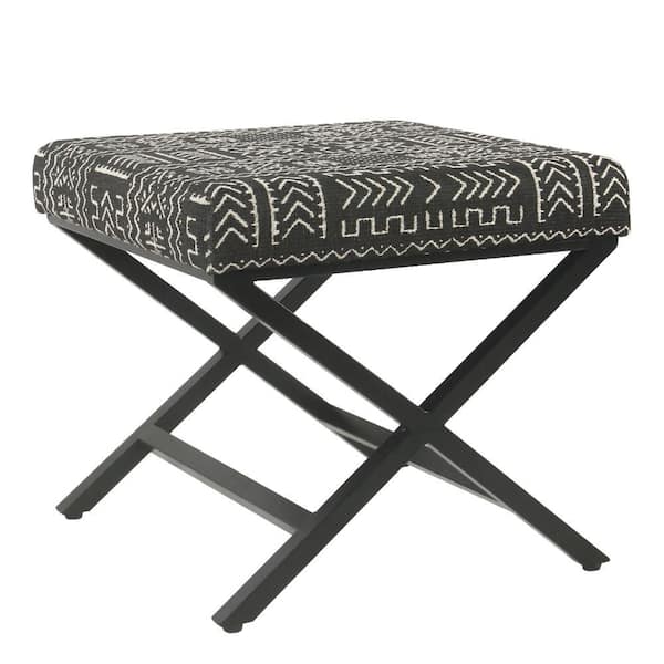 Black and White Fabric Rectangle Accent Ottoman