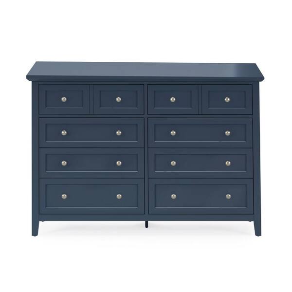 Blue and Nickel 8-Drawers 60 in. Dresser Without Mirror