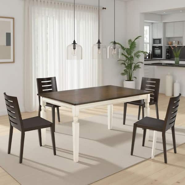 Borg Brown and White Wood 35.88 in. 4 Legs Dining Table Seats 4