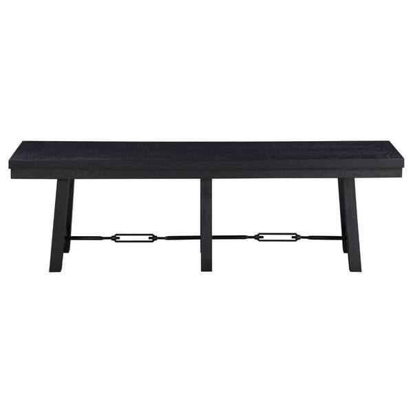 Brar Modern Black Asian Hardwood 60 in. Trestle Dining Table Bench Seats 3