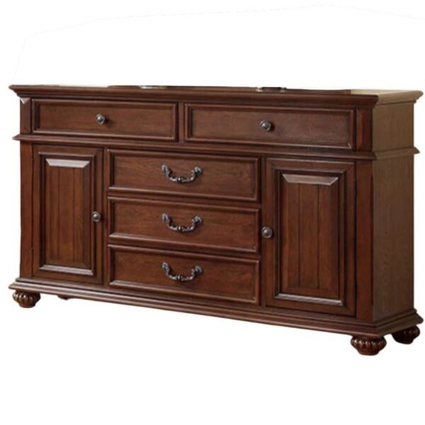 Brown 5 Drawer 65 in. Dresser Without Mirror