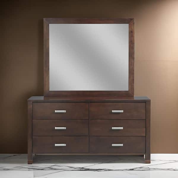 Brown 50 in. W x 42 in. H Modern Square Wood Dresser Mirror