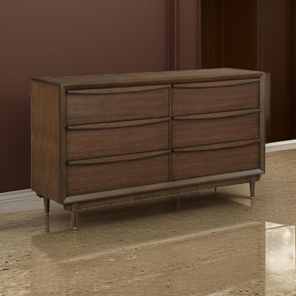 Brown 6-Drawer 62 in. Wide Dresser Without Mirror