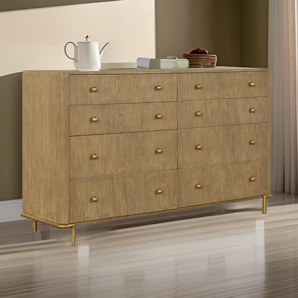 Brown 8-Drawer 63 in. Wide Dresser Without Mirror