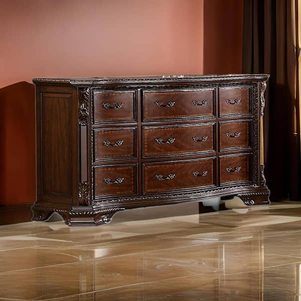 Brown 9 Drawer 63 in. Dresser Without Mirror