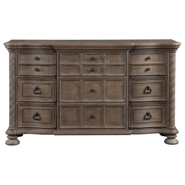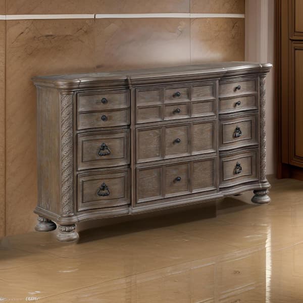 Brown 9-Drawers 66 in. Dresser Without Mirror