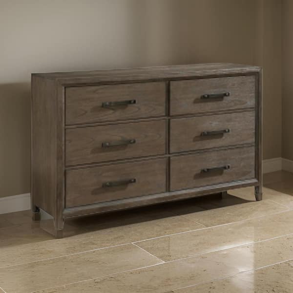 Brown, Black and Nickel 6-Drawer 62 in. Wide Dresser Without Mirror