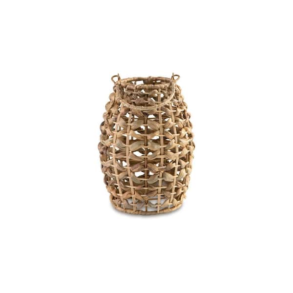 Brown Rattan Woven Candle Stand Lantern with Sleek Handle Rattan
