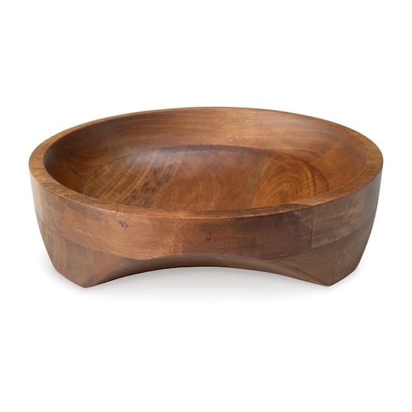 Brown Wood Decorative Bowl with Food Safe and Carved Pattern at the Bottom