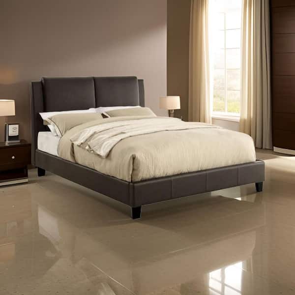 Brown Wooden Frame Queen Platform Bed with Brown PU Headboard