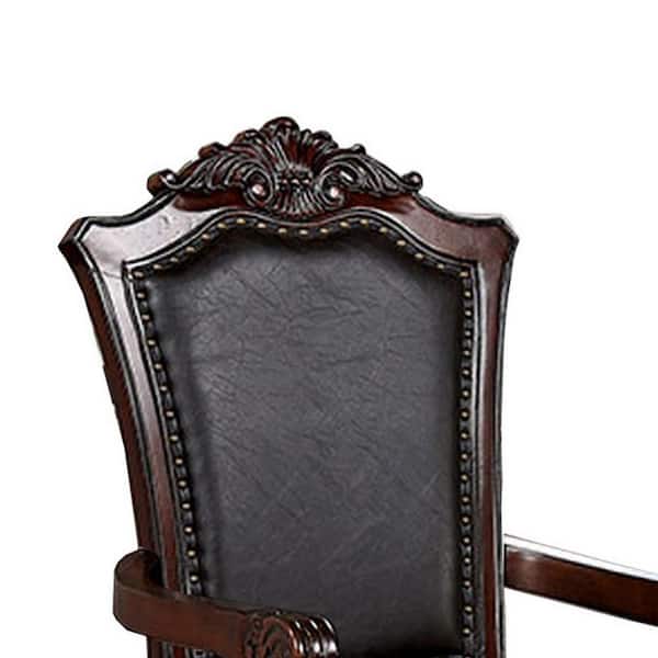 Brown and Black Vegan Faux Leather Nailhead Trim Dining Armchair (Set of 2)