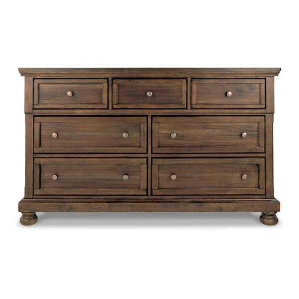 Brown and Brass 7-Drawer 65.38 in. Wide Dresser Without Mirror