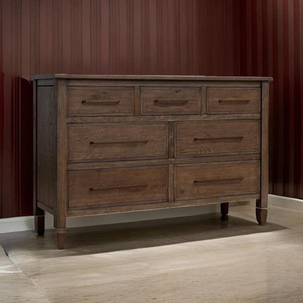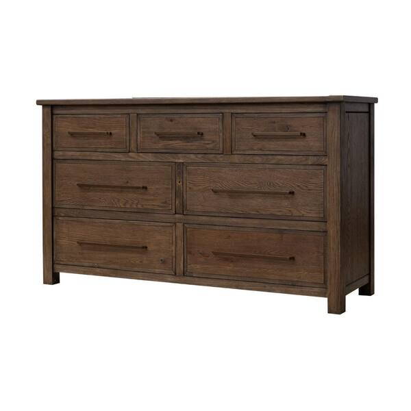 Brown and Bronze 7-Drawers 63.75 in. Dresser Without Mirror