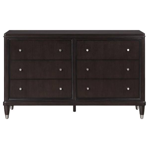 Brown and Silver 6-Drawers 64 in. Dresser Without Mirror