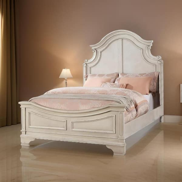 Buk Beige Wood Frame Full Size Platform Bed with Storage Nailhead