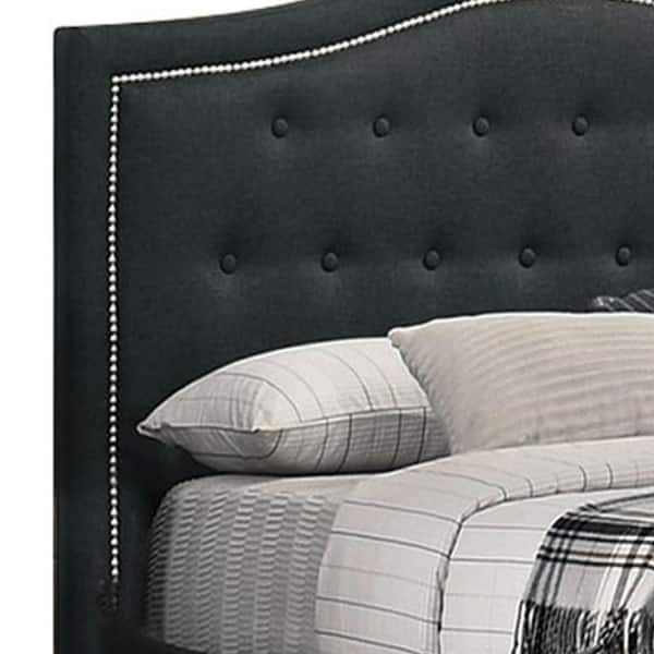 Buk Charcoal Gray Wood Frame King Size Platform Bed with Tufted Headboard Charcoal Burlap Upholstery
