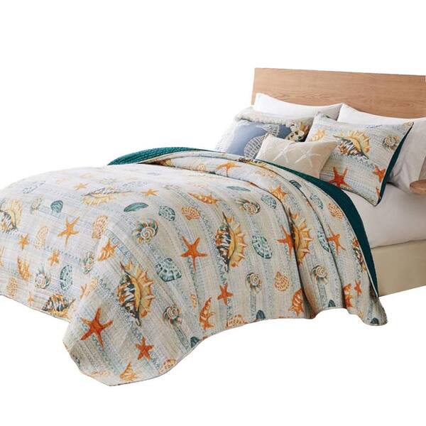 Carie Blue Coastal Seashells Cotton Microfiber Full/Queen Quilt (Set of 3)