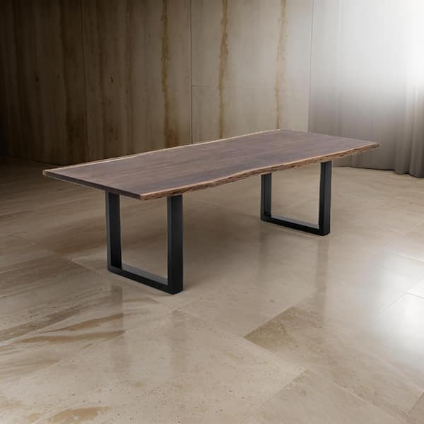 Cid Joe Brown and Black Wood 43 in. Double Pedestal Open Dining Table Seats 8