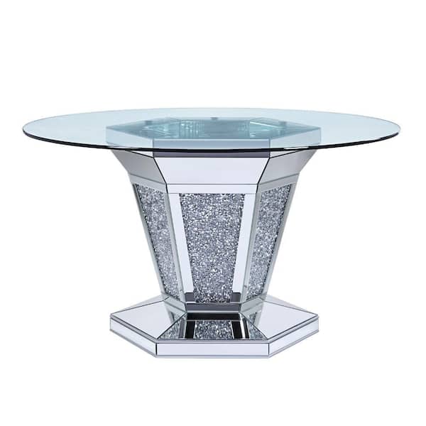 Clear and Silver Glass Round 52 in. Pedestal Base Dining Table Seats 4