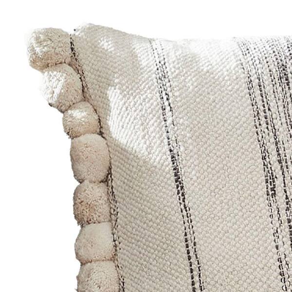 Cream Textured Pom Pom Edges Decorative 18 in. x 18 in. Throw Pillow Cover