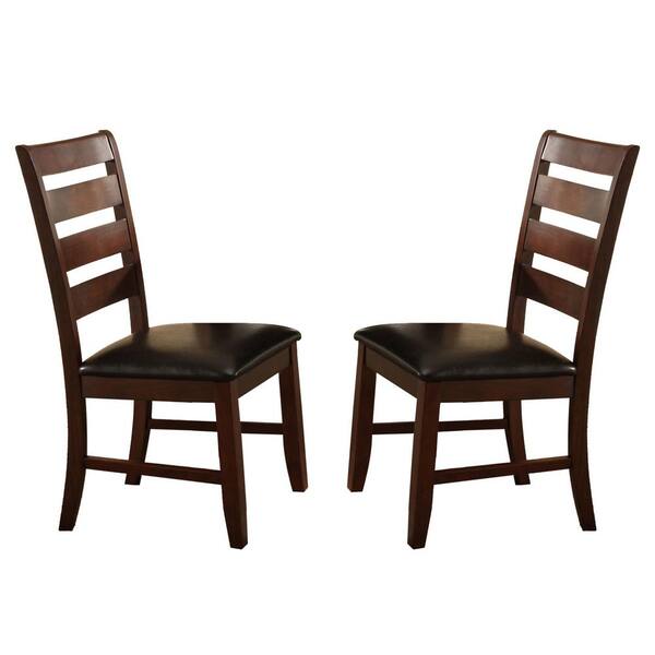 Dark Brown Wooden Dining Chair with Ladder Back Design (Set of 2)