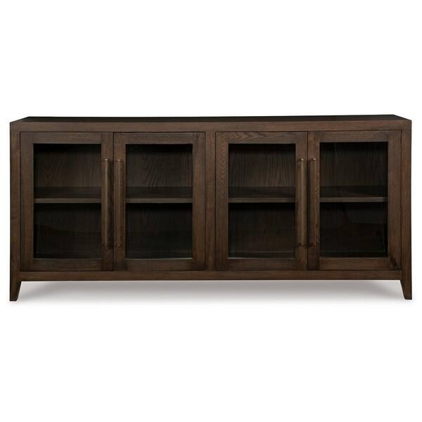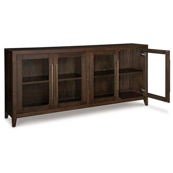 Dark Brown Wooden Top 80 in. Accent Cabinet Sideboard with 4 Glass Doors and 2 Shelves