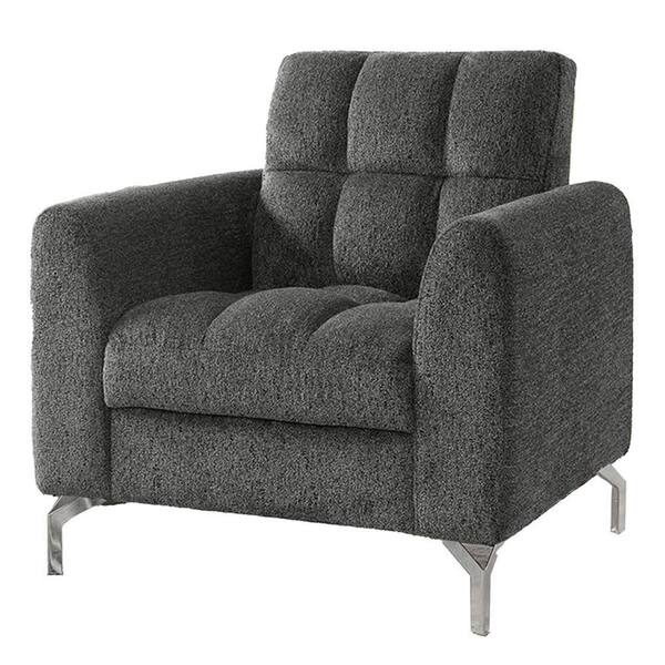 Dark Gray and Chrome Chenille Arm Chair with Biscuit Tufting and Chrome Legs