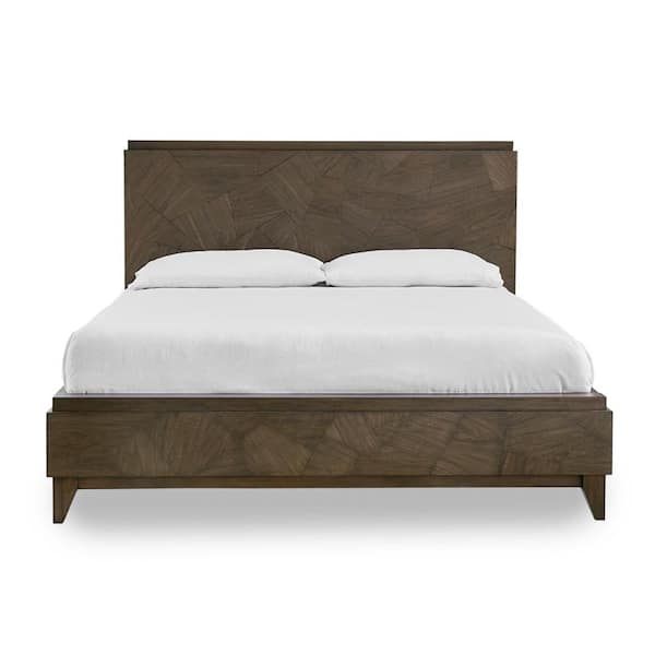 Dee Oat Brown Wood Frame Queen Size Panel Bed with Low Profile
