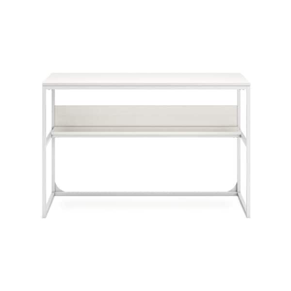 Deni 47.38 in. Rectangular White Wood Writing Desk with 1 Shelf