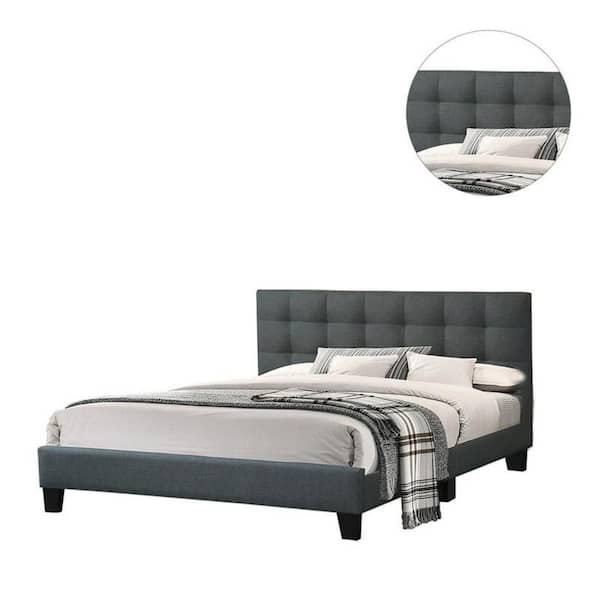 Dex Gray Wood Frame King Size Platform Bed with Plush Tufted Upholstery