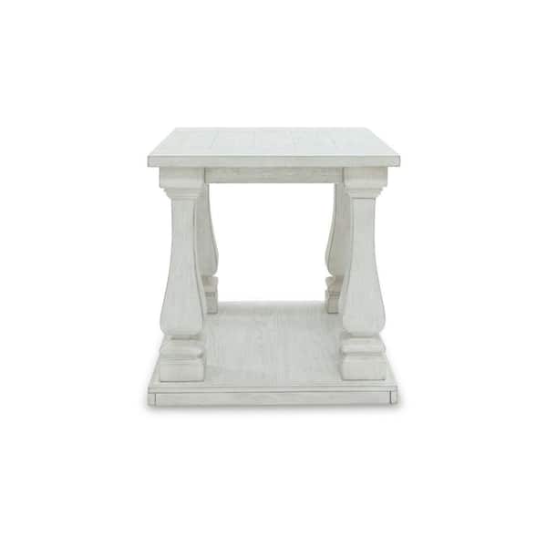 Dyne 23.75 in. Antique White Rectangle Wooden End Table with Baluster Legs