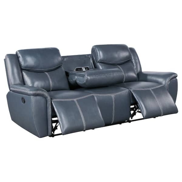 Eleni Blue Faux Leather Glider Recliner Manual Sofa