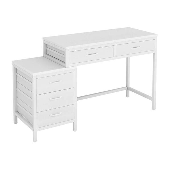 Eli Vintage White Wood and Metal Makeup Vanity Desk Table with 5-Drawers