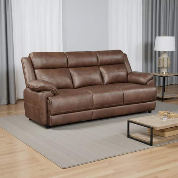 Ellen 86.25 in. Pillow Top Arm Faux Leather Rectangle Sofa in. Brown and Black