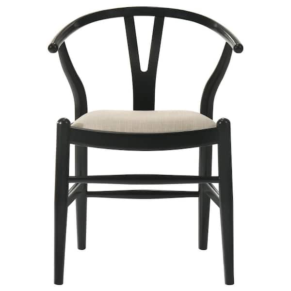 Ellie Wishbone Black and Beige Fabric Wishbone Dining Chair (Set of 2)