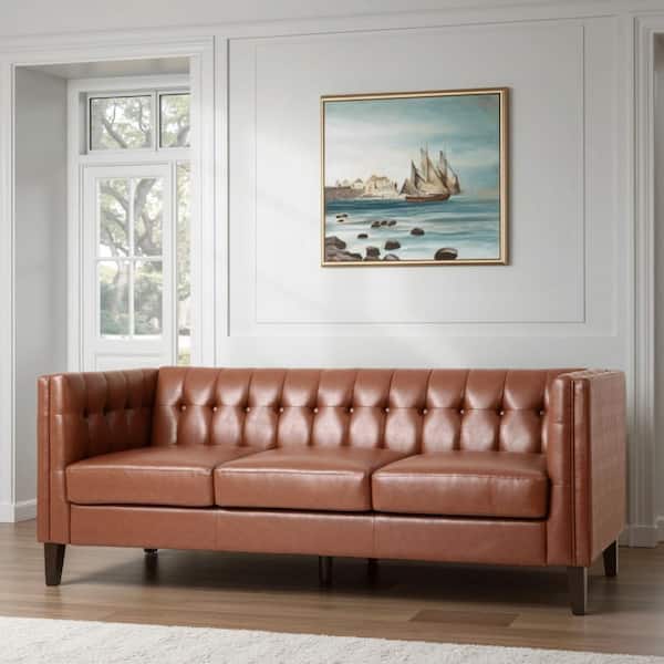 Ember 31 in. Square Arm Faux Leather Rectangle Chesterfield Button Tufted Sofa in Brown