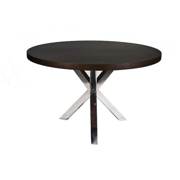Emi Brown and Chrome Wood Round 47 in. Cross Legs Base Dining Table Seats 3