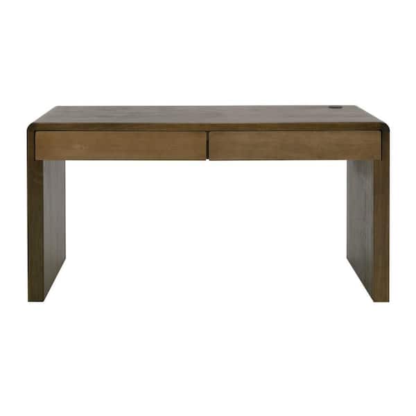 Esis 23.25 in. Rectangular Dark Brown Wood 2-Drawer Writing Desk with USB Ports