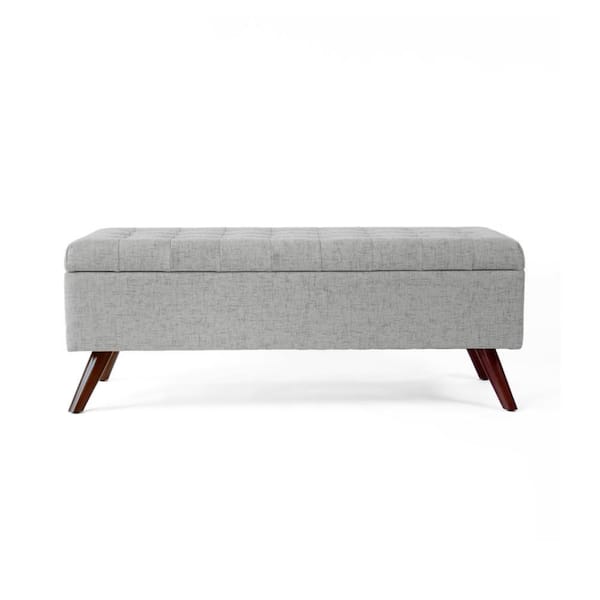 Eva Cloud Gray and Walnut Brown Fabric Rectangle Storage Ottoman