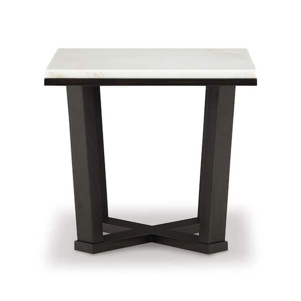 Fana 24 in. White and Espresso Brown Square Marble End Table